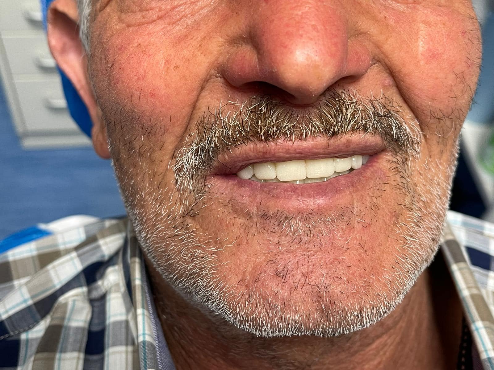 Dopo: grazie all’implantologia, i denti sono stati sostituiti con protesi fisse supportate dagli impianti, ripristinando funzionalità ed estetica in modo naturale e duraturo.